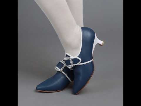 Dunmore 18th century shoes trimmed in white are the ideal materials, silhouette, and heel to pair with your late 18th century gown, from the Revolutionary War to the French Revolution.
