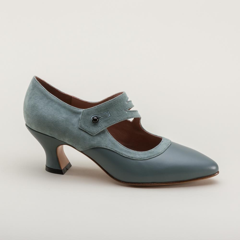 Developed directly from an original 1900s design, the Mae feature tone-on-tone suede and smooth leather with a sophisticated Mary Jane strap crossing elegantly over the instep. The 2.25 in / 5.7 cm French heel is delicate and well-balanced, paired with a pointed toe to create the perfect Edwardian and 1920s silhouette.